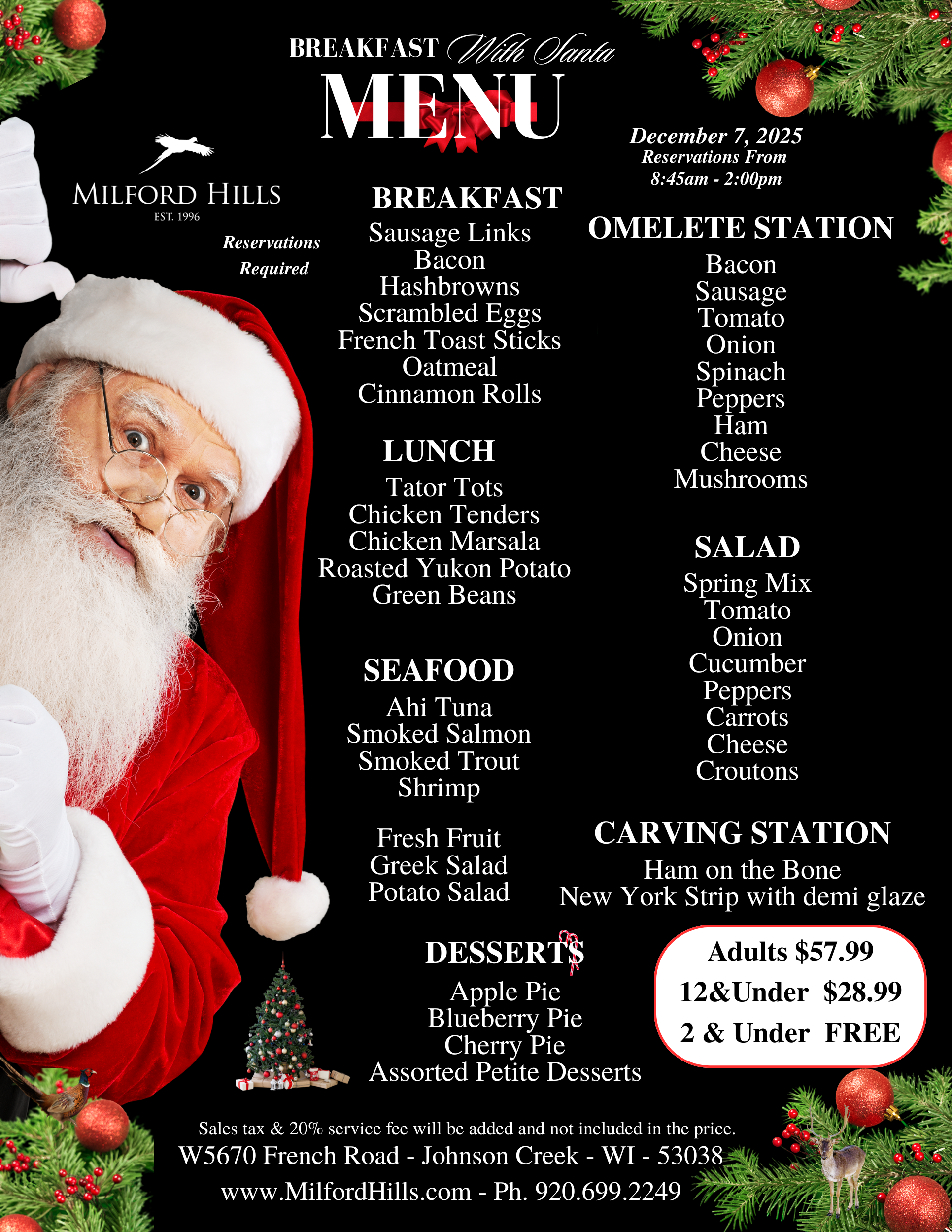 • Reservation numbers that change on the day of the event without prior notification of at least 72 hours prior to the event date will be charged to their credit card or house account full price for each meal.