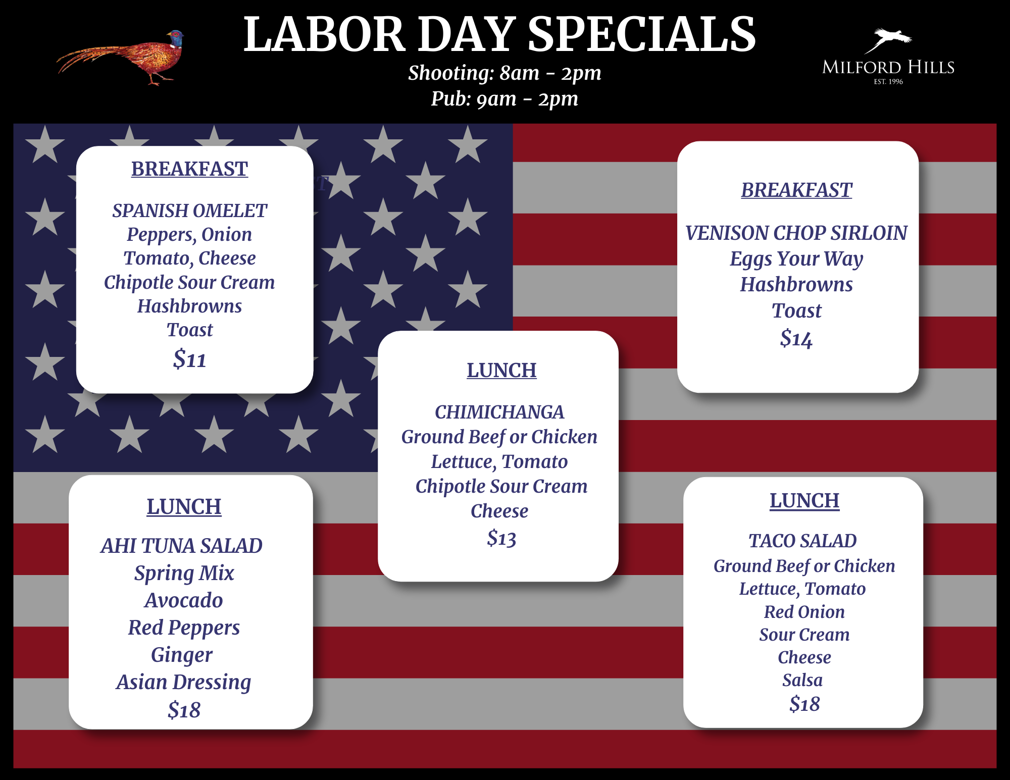 Bring the family out on Monday, September 2nd, 2024 for our Labor Day Specials!