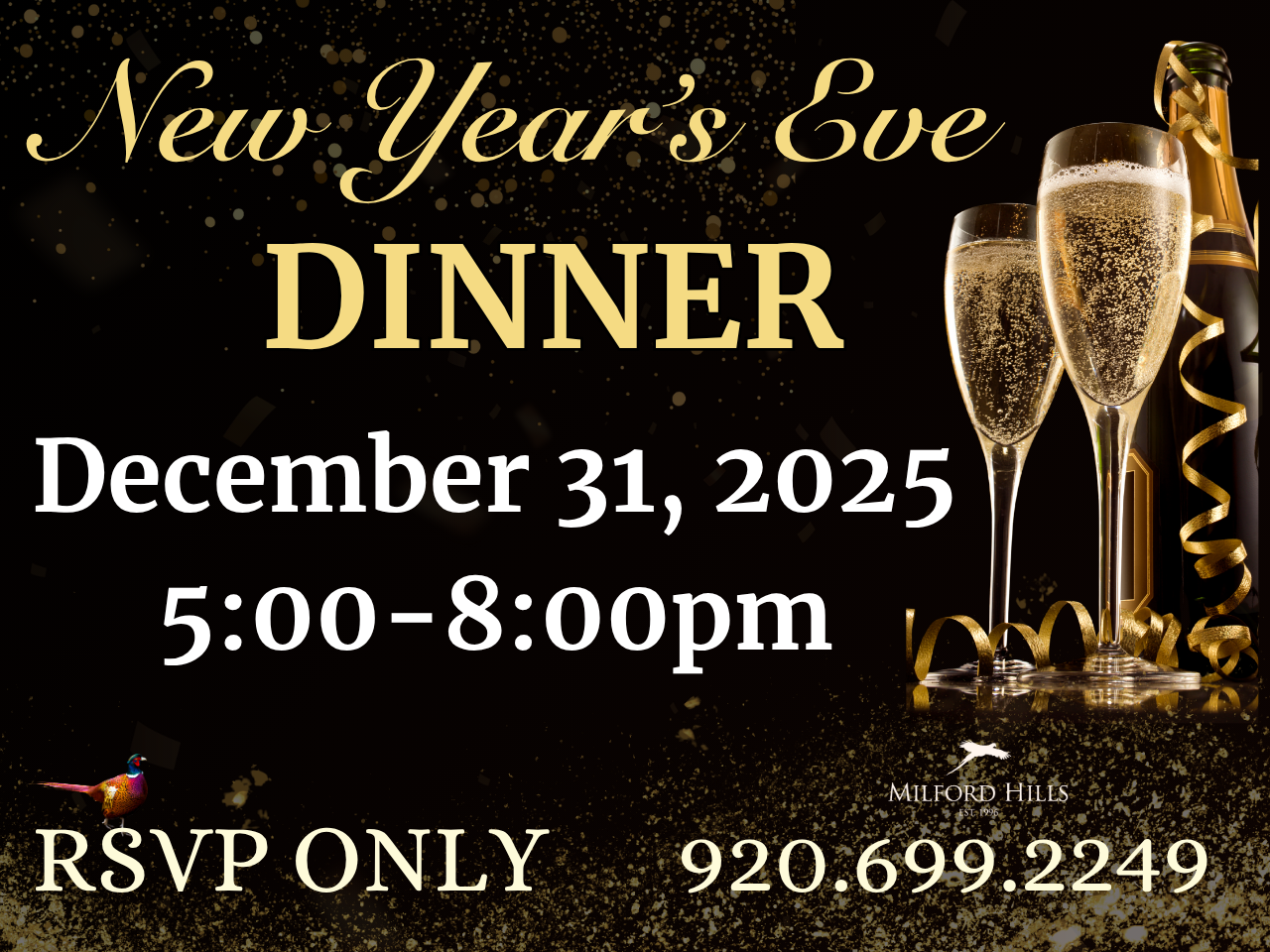 • No call or no show on the day of the event will be charged to their credit card or house account for full price.